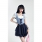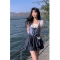 芭比姨 蛋糕连衣裙女夏季新款拼接小香风方领泡泡袖纯欲辣妹短裙