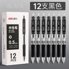 得力s01中性笔按动笔0.5mm黑色签字笔圆珠笔水笔办公用笔